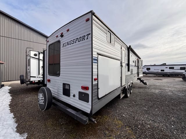 The 2021 Kingsport 321TBS is a rugged yet family-friendly travel trailer that balances clever design, solid build quality, and spacious comfort — making it an ideal choice for extended trips or weekend escapes. With two slide-outs, this 36’ 7″ trailer delivers an open, airy interior that feels much larger than its footprint.