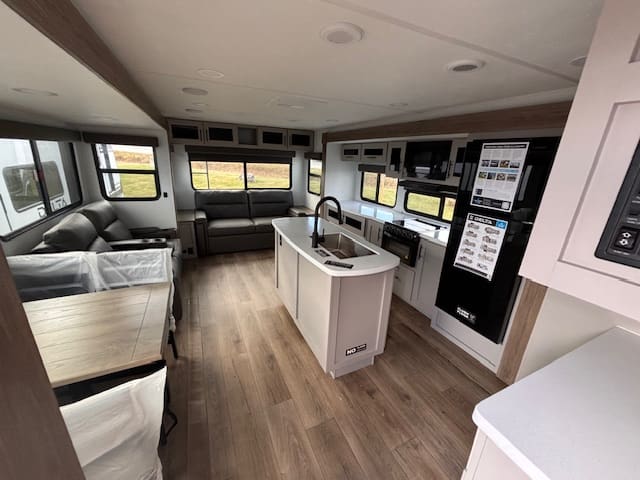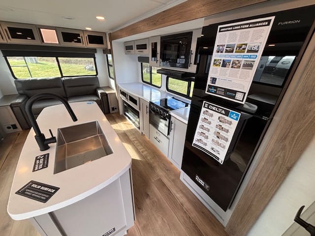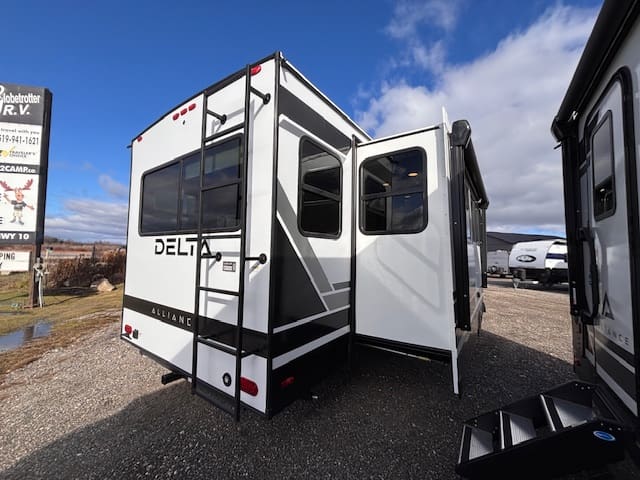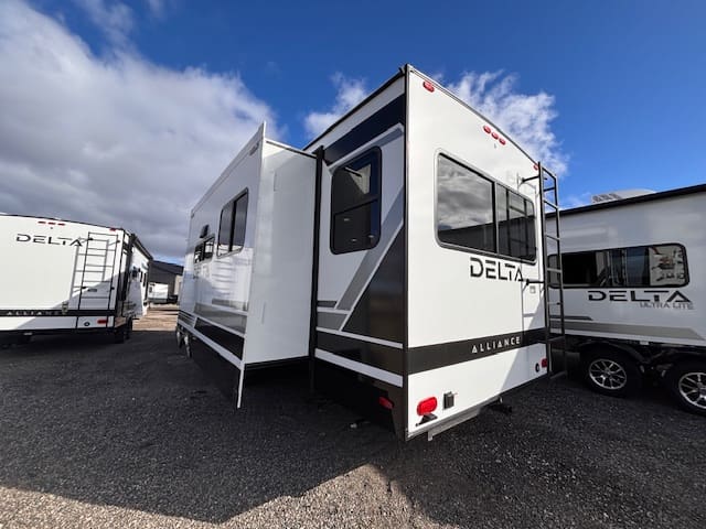 Outside, the Delta 292RL keeps the good times rolling with dual power awnings, awesome pass-through storage, and a sturdy, sleek build that’s ready for real adventures. Whether you’re setting up for a long weekend or planning a cross-country haul, this trailer brings style, comfort, and a whole lot of personality.