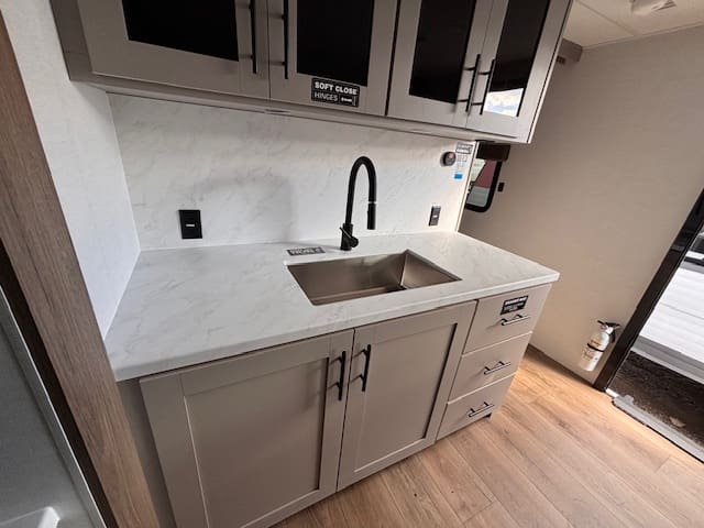 From the quality cabinetry to the durable flooring and clean modern finishes, every detail feels thoughtful and well-crafted. Outside, you’ll find plenty of storage and all the essentials to make set-up simple and camping stress-free.